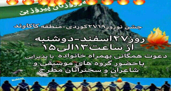 بە پێی بانگەوازێک کە لە لایەن ھێندێک لە چالاکانی کرماشانی بڵاوکرایەوە بڕیار وابوو کە رۆژی دووشەممە ٢٧ی رەشەمە رێوڕەسمی نەورۆز لە ناوچەی کاکەوەن بەڕێوە بچێ.